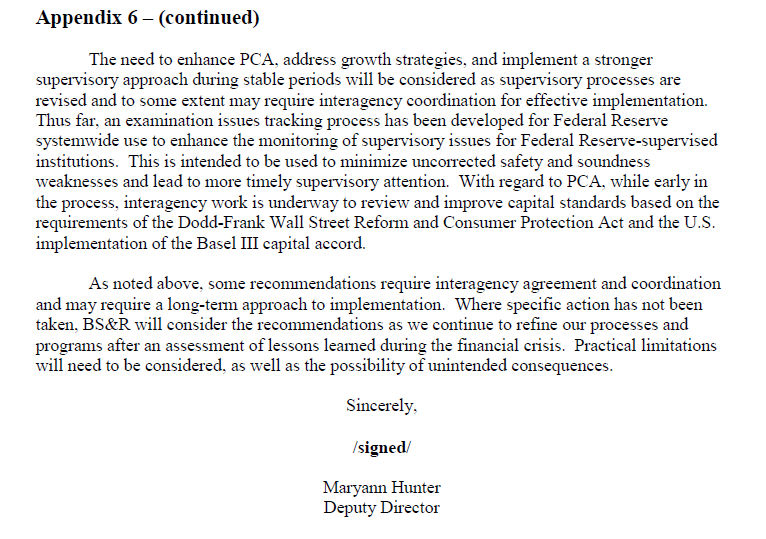 Let me restate the exact text from above response which is the reason for the failure of the Federal Reserve which is clearly stated in this Report and which is the failure to enforce any requirements as seen below: